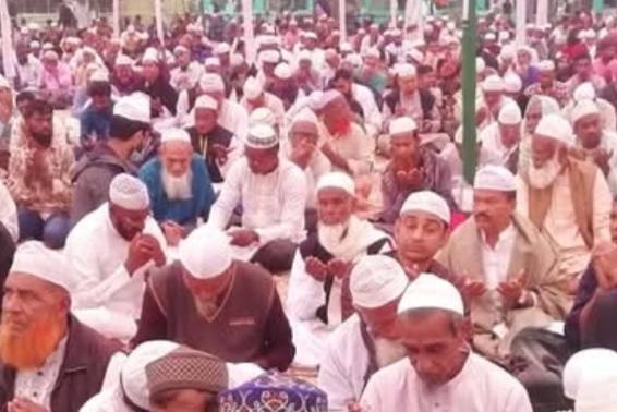 মোনাজাতে ধর্মপ্রাণ মুসল্লিরা চোখের জলে আল্লাহর দরবারে গুনাহ মাফের জন্য প্রার্থনা করেন।