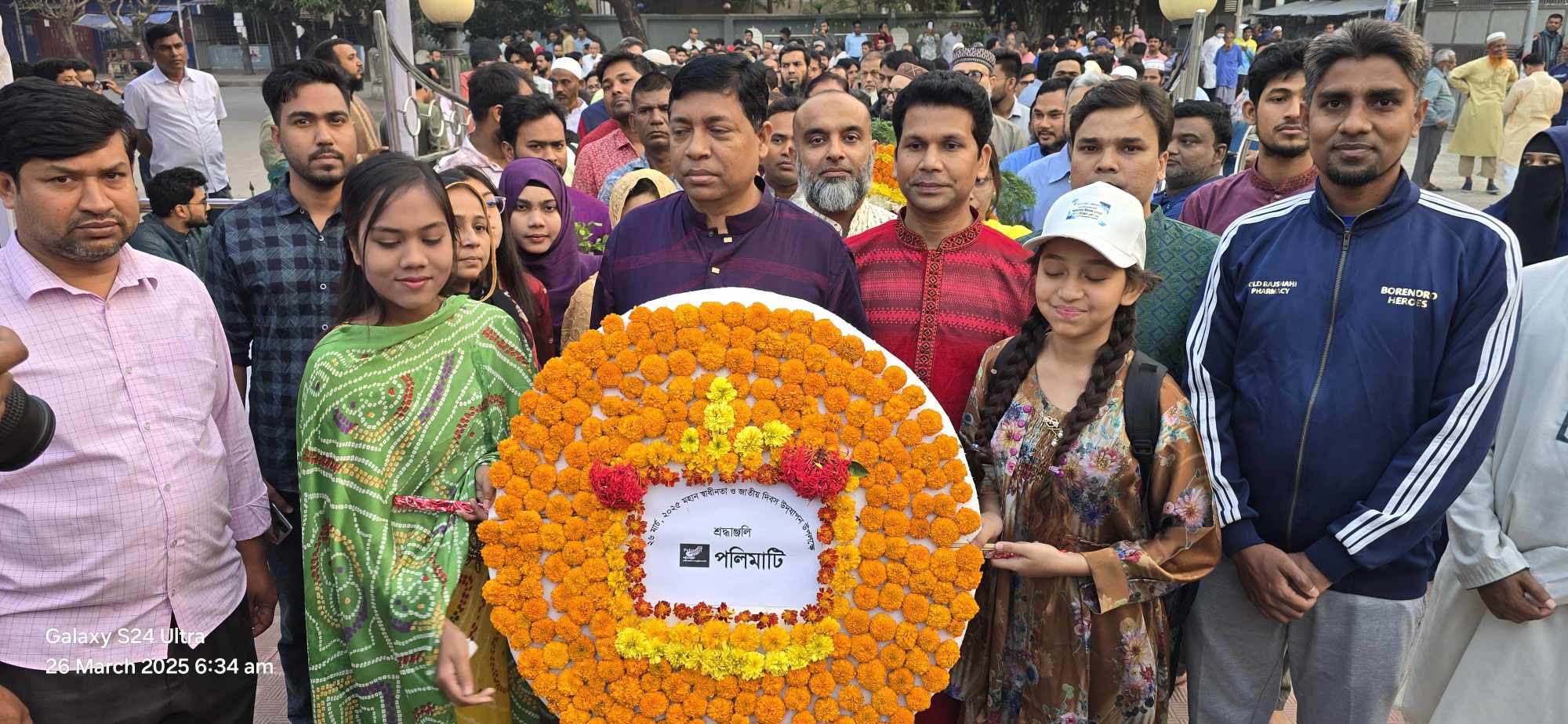 ২৬ মার্চ ২০২৫ তারিখ বুধবার মহান স্বাধীনতা ও জাতীয় দিবসে মুক্তিযুদ্ধে আত্মদানকারী শহীদদের প্রতি বিনম্র শ্রদ্ধা জানিয়েছে রাজশাহীর সামাজিক ও সাংস্কৃতিক সংগঠন ‘পলিমাটি’। সকাল ৬:১৫ টায় রাজশাহী জেলা প্রশাসকের কার্যালয় সংলগ্ন স্বাধীনতা স্তম্ভে এ শ্রদ্ধা জানানো হয়।
