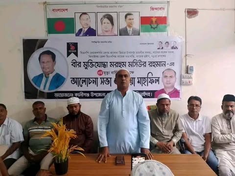 কালীগঞ্জ(ঝিনাইদহ)থেকে। —মোঃমাহাবুবুর রহমান। ঝিনাইদহ জেলা বিএনপির সাবেক সভাপতি, সাবেক হুইপ, ৭১’র রণাঙ্গনের বীর মুক্তিযোদ্ধা মরহুম মসিউর রহমান-এর ৩য় মৃত্যু বার্ষিকী উপলক্ষে শনিবার বিকালে হাসপাতাল সড়কস্থ বিএনপির দলীয় কার্যালয়ে আলোচনা সভা অনুষ্ঠিত। প্রধান অতিথি হিসেবে উপস্থিত ছিলেন, ঝিনাইদহ -০৪ আসনের গণমানুষের নেতা আগামী জাতীয় সংসদ নির্বাচনে ধানের শীষের মনোনয়ন প্রত্যাশী কালিগঞ্জ উপজেলা বিএনপির সাবেক সিনিয়র যুগ্ম আহবায়ক জনাব হামিদুল ইসলাম (হামিদ)। বিশেষ অতিথি হিসেবে উপস্থিত ছিলেন, কালিগঞ্জ পৌর বিএনপির যুগ্ম আহবায়ক মিজানুর রহমান (লাল্টু) বিএনপি নেতা জুমারত আলী জুম্মারত আলী, উপজেলা যুবদলের সদস্য সচিব, মাহাবুবুর রহমান(মিলন) , পৌর যুবদলের আহবায়ক শাহজাহান আলী খোকন, সহ — কালিগঞ্জ উপজেলা ও পৌর বিএনপির সকল অঙ্গ সহযোগী সংগঠনের সিনিয়র নেতৃবৃন্দু আরো অনেকে।