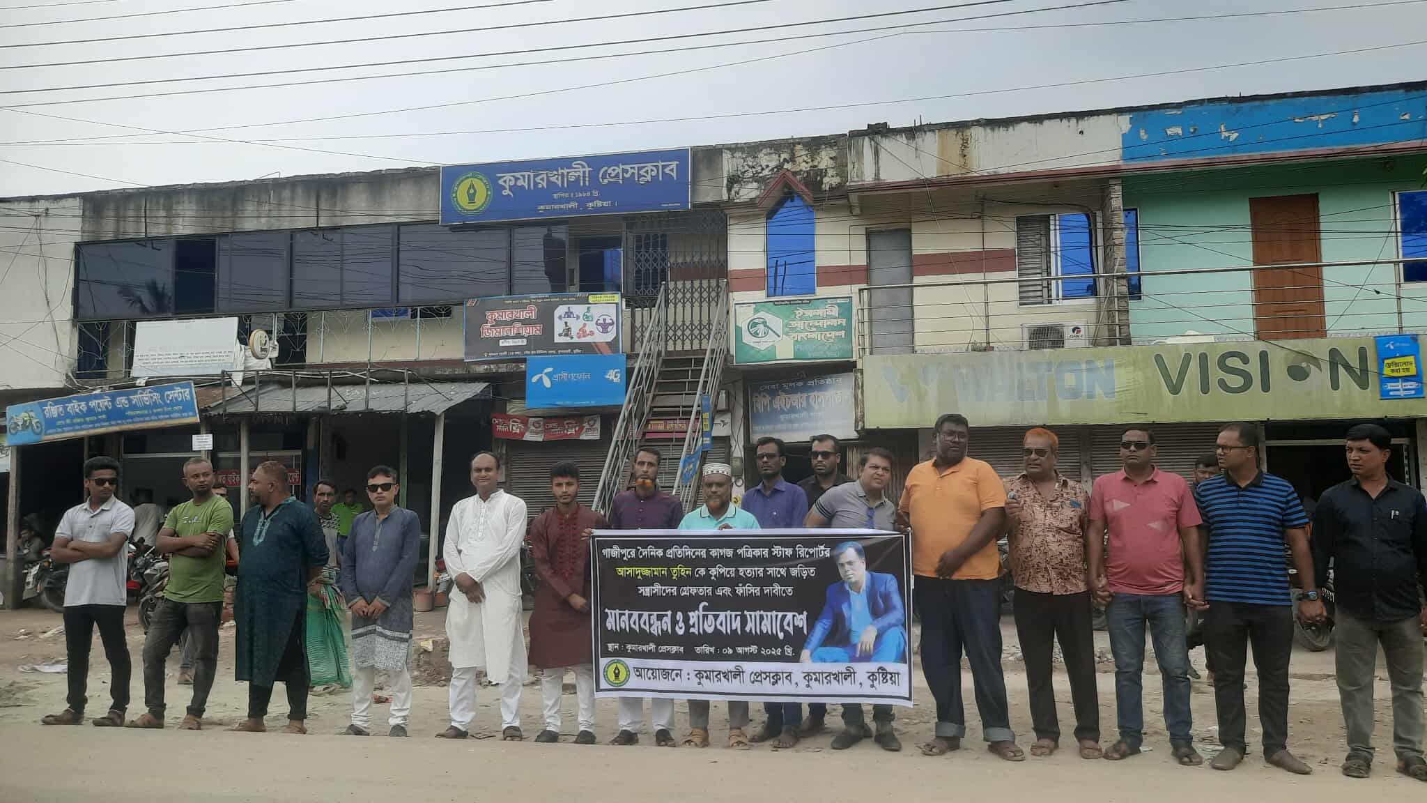 গাজীপুরে সাংবাদিক তুহিন হত্যার সাথে জড়িত সন্ত্রাসীদের গ্রেফতার এবং ফাঁসির দাবিতে মানববন্ধন ও প্রতিবাদ সমাবেশ