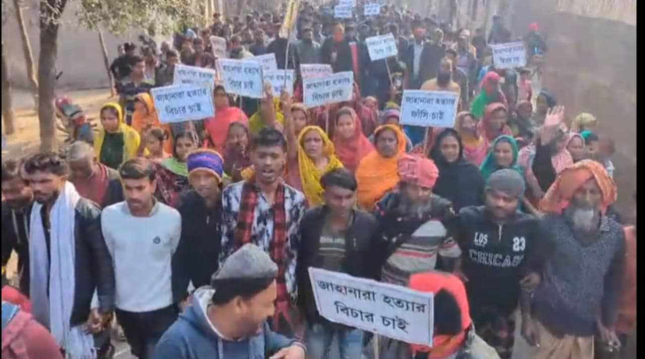 দৌলতপুরে জাহানারা বেগমের হত্যাকারীদের গ্রেফতার দাবিতে বিক্ষোভ মিছিল