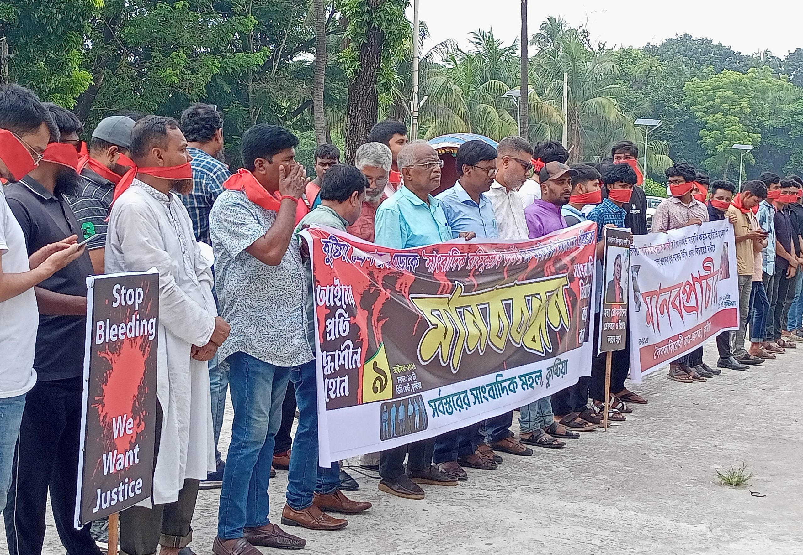 কুষ্টিয়ায় সাংবাদিক রফিকুল্লাহ কালবির ওপর নৃ’শং’স হা’ম’লা’র প্রতিবাদে মানববন্ধন, ৭ দফা দাবি